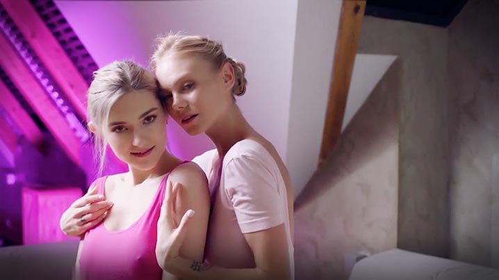 热门,两个嫩模美女的互相调戏抚摸奶子。